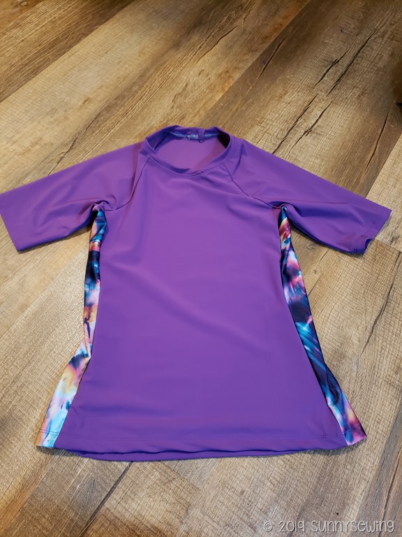 Fabric: Purple swim panel $4.25/yard that I purchased in July 2016 from Hancock’s going out of business sale; And Black Swim that I have no clue where or when I purchased.