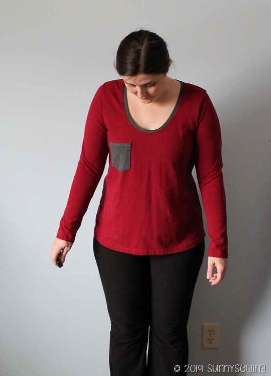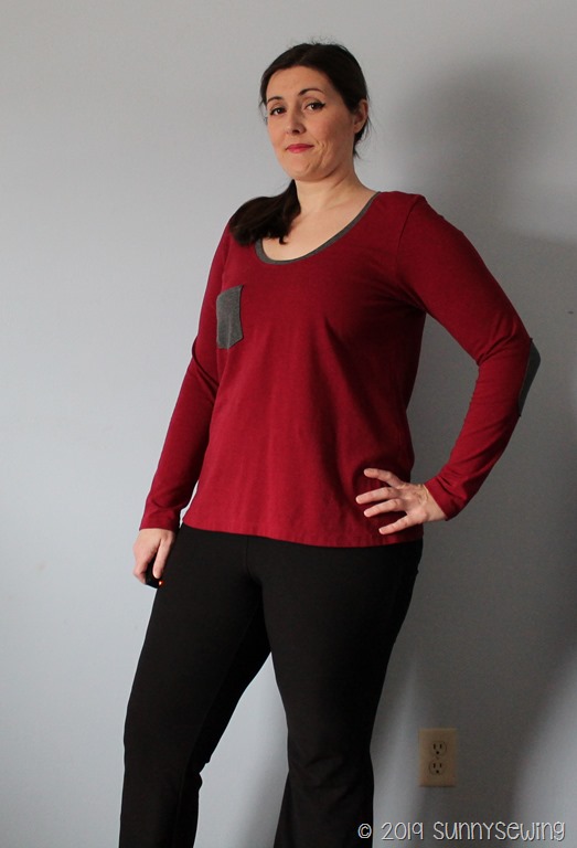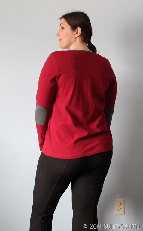 Thoughts: This top is also a “meh.” I have a love/hate relationship with rayon spandex. I love it for skirts and some tops but hate it for most tops. I knew in my head I should have used different fabric but I already had it cut out so I trudged on. The fit is ok, a little looser due to the drape of the fabric. I much prefer the structure of this top in the French terry I made before; I should have used that again. I’m also losing weight so that could make up for the bagginess. It’s not a love; I probably won’t keep it. I will make another in a sturdier fabric. (Also, really hard to get good light in winter in Wisconsin!).