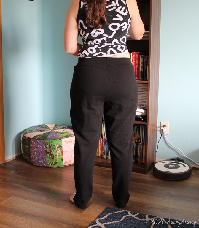 Thoughts: I’m ok with how they turned out, but I feel I had to do so many alterations for my shape that it was exhausting. I’ll wear them awhile to see how they fit. I do like the pockets and how they are sewn down so there is no floppy pocket bag. The front crotch still has some weirdness going on – it feels too long and I’m not sure if the pattern is intended for a dropped crotch or if my rise is just too long.So they are just ok and not something I love.