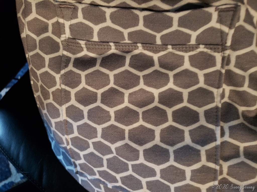 Fabric: 2 yards of Dark Grey Honeycomb Double knit. It is 50% polyester and 50% rayon. I purchased it from fashionfabricsclub in June 2019 for $3.92/yard.