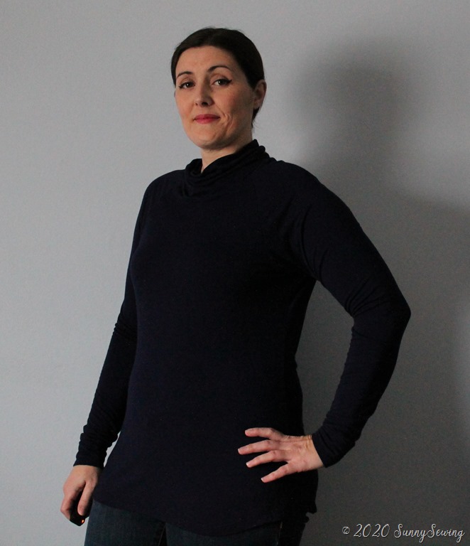 Made Oct 2019. Another make that never really enjoyed was my second sewing of the Jalie Alex. This fabric just feels all wrong on my body. Comfort wins with me and this one isn’t comfortable. The double fabric folds and bunches thickly and the weird arm folds feel gross. I do love this pattern, however, and I actually stole the one I made Miss K in fleece Llamas – which I wear all the time. In fleece this pattern is awesome.