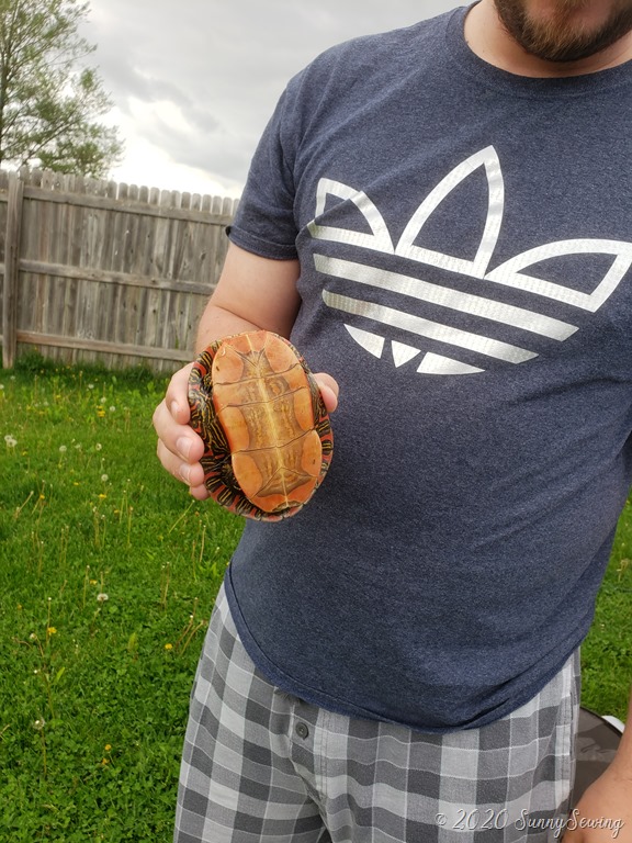 4. We found a friend who kept wandering in our yard this summer. This was a super exciting event that kept us entertained for about a week. She seemed to like our pool stuff. After a week Mrs. Turtle moved on. My husband thinks she was looking for a place to lay her eggs. (she was not harmed, we picked her up 2 times to put her by the edge of the fence by a hole so she could leave; she just kept coming back to the middle of our yard!)