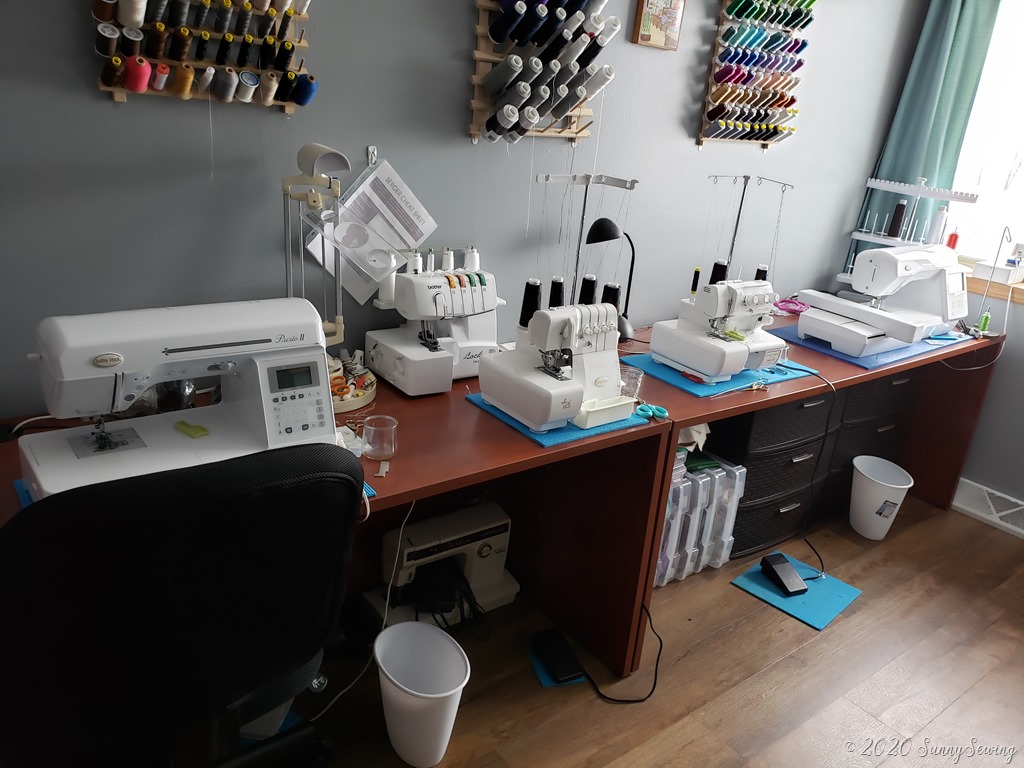 Ok, you see a theme going here. I need 2021 to be a year of use it up, make due, do not buy more. I am actually putting us on a spending freeze starting Jan 1. We have too much stuff. I have moving on my mind and we need to move less this time. Back to the sewing machines. I am a bit obsessed with collecting them. I either buy a machine and then a new one comes out and I’m all “oooh that’s pretty, I want it” or I see a vintage machine and my heart just screams “buy it, fix it up, don’t let it get thrown away!” I have a serious problem. There is nothing wrong with my machines both new, and old. I cannot get any more until we move. Right now I have my main machines from L to R: Babylock Presto 2 as main, Babylock Celebrate as main serger (brother 1034d that I just can’t get rid of as a backup. He has been such a workhorse), Babylock Coverstitch2 as my coverstitch, and my Babylock Flourish2 as my embroidery machine. In addition to these that I use almost on the daily, I have my vintage “fun” machines that I pull out whenever I get the itch. There are 2 Kenmores, 2 Whites, 1 Elna, 2 Singers I’m fixing, and a Montgomery Ward. I love working on them and making them run in tip top shape again. We also have Miss K’s Brother sewing machine in my room. So that is 14 freaking machines we have. That is enough for a lifetime of sewing. I need to stop. Here are just some of the ones I have.