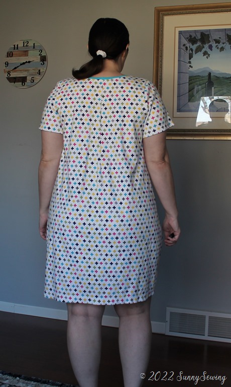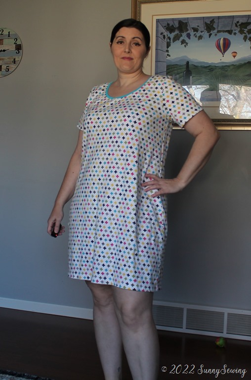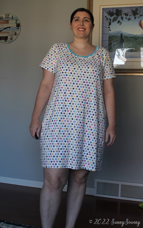 Thoughts: I made this for a nightgown, I love it for that purpose. Let’s be real here, I don’t leave the house unless I have a doctor’s appointment, so many times I just wear the nightgown all day. It is soft and comfortable, easy to throw on and go. The interlock is thicker and less stretchy than most knits, but it works well in this dress. I have no complaints!
