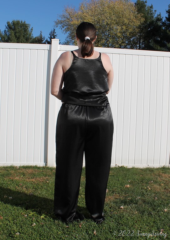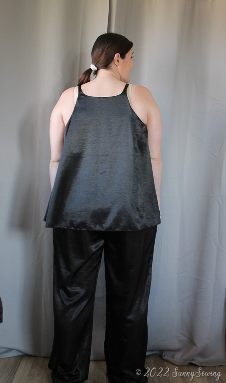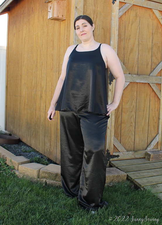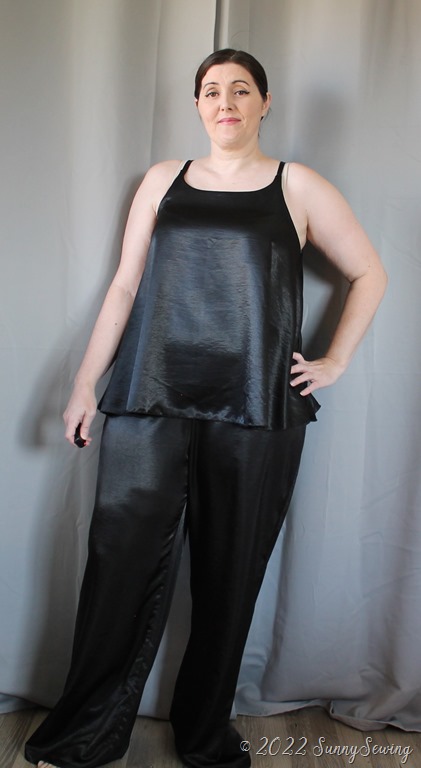 Thoughts: Well, this is the right type of fabric for this pj set but I hated sewing with it. It was such a pain. I do love the pants. They are fun and slippery to wear. The top seems huge and sack-like. It is not very flattering at all. I’m not sure how I feel about it yet. I’ll give it a wear for awhile before I decide. I think that now that I gained weight I’m not used to my body or comfortable with it. My bust has grown quite a bit and it makes the tops seem huge and sack-like on me, while it eliminates my waist. I must fit the bust and this makes the waist bigger. Back in 2019 when I started this my bust was 39 inches. It had been that way for a long time, and I was used to it. Now here in 2022 I have a 42” bust and those 3” make a big difference, lol. My waist went from a stable 32” to a thyroid belly of 39” – that’s been the hardest to accept.