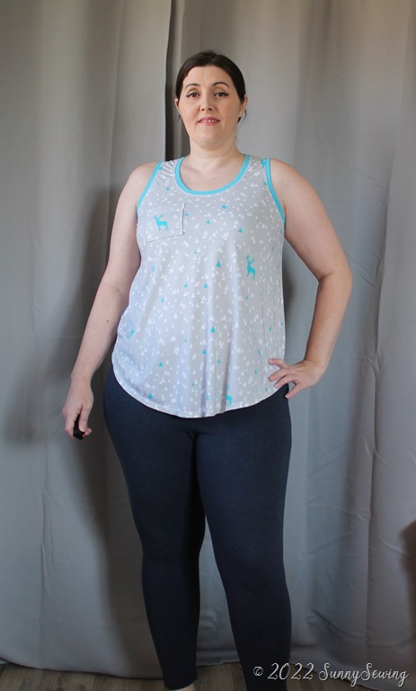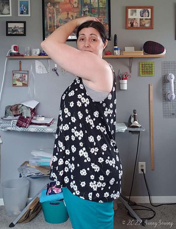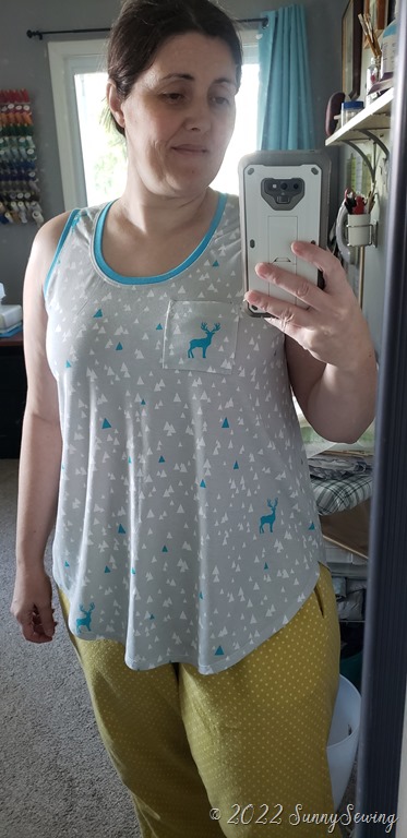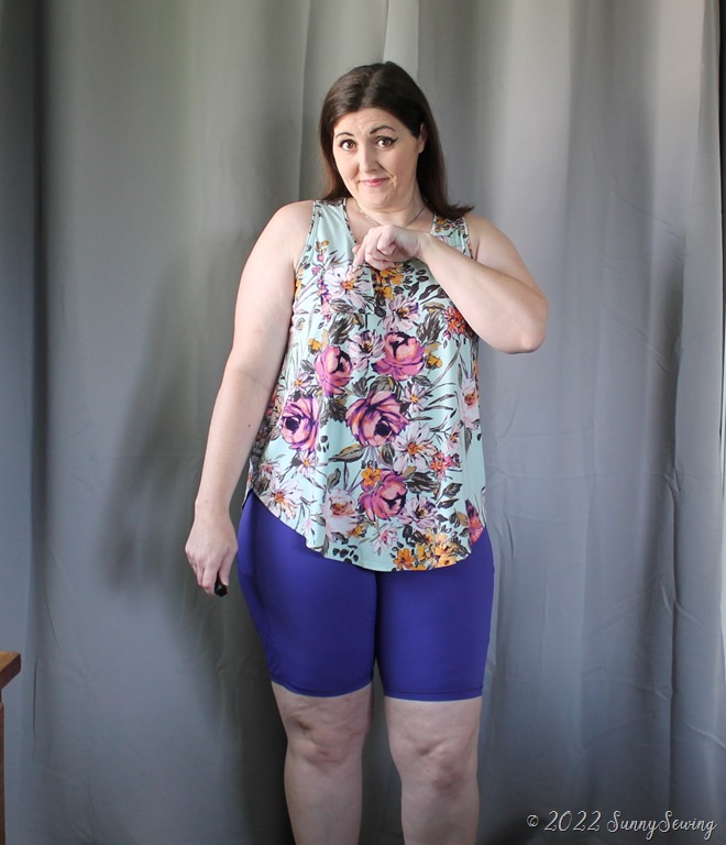 The tank is okish. I’m not a fan really. The neck is way too high for me even though I lowered it. There is way too much side boob showing. The armscyes are really low. A 1X size in this pattern is the same as a size L in love notions patterns. I realize I’m not petite, but the pattern was free and I’ve seen other non-petite people make it on Facebook. I thought I would give it a go. And I don’t care for it so I won’t be making it again.