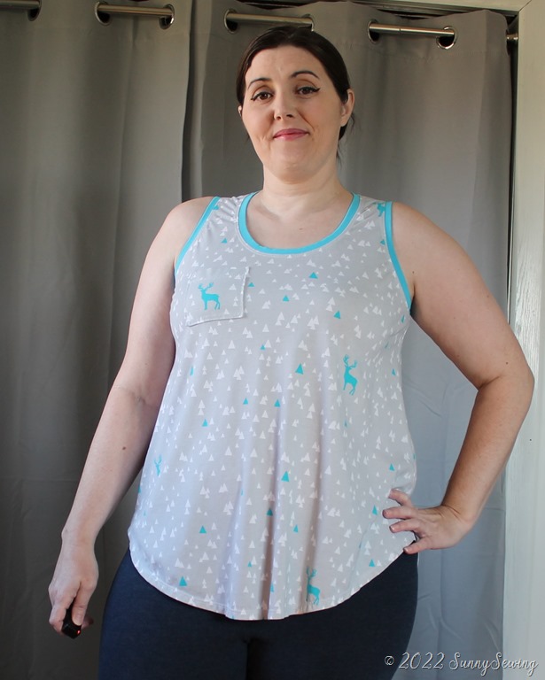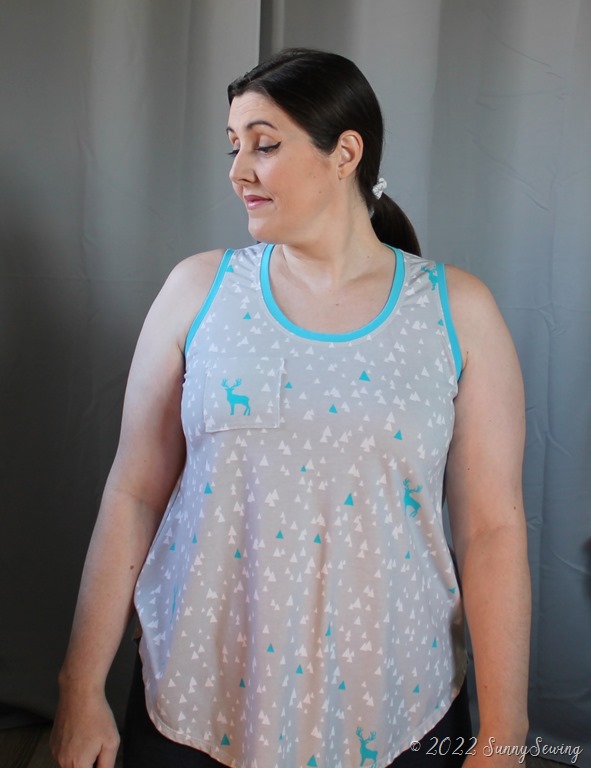 Thoughts: OMG. I freaking LOVE this tank!! I don’t know why I held off so long on making it. The dbp drapes just right and it hangs nicely and doesn’t show my thyroid belly. I feel comfortable and pretty in it. I wore it almost every day I could from July to September when it got too cold. The tiny pocket makes me smile.