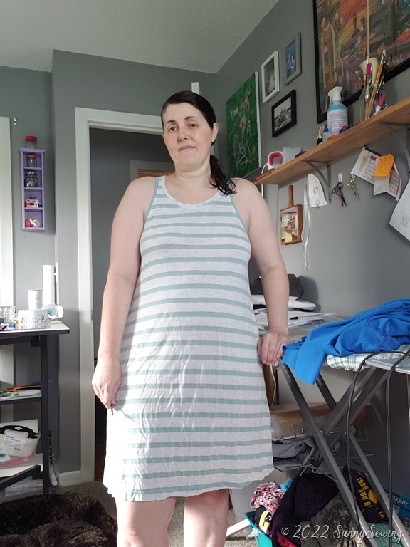 nightgown: Love Notions – Laundry Day Tee as dress, sewn July 2022 – I wear this a lot. It is super comfortable. (this is a free pattern if you join their FB group)