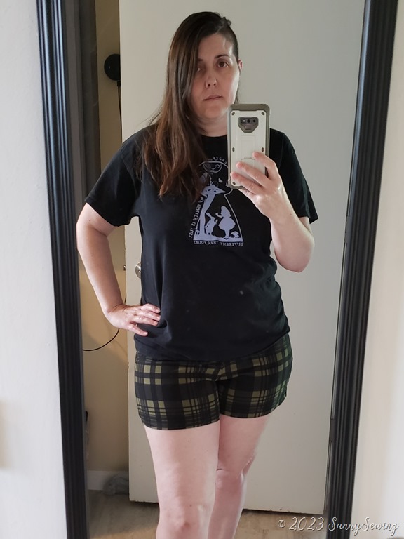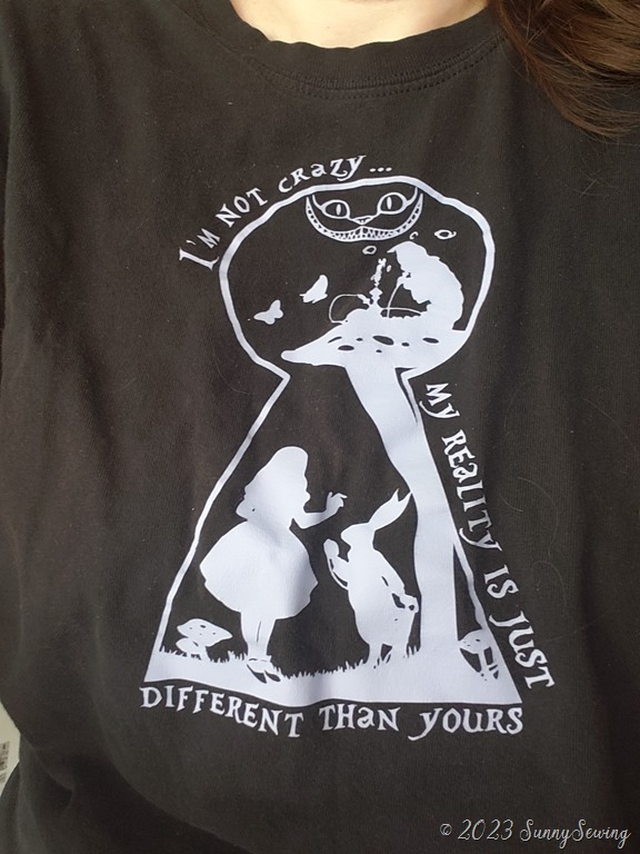 I’ve worn this so much over the years that my graphic on the front is starting to tear off. I made it with my Silhouette Cameo I think before I got my heat press? maybe , maybe not. my memory is not the best. I’m crabby and tired and my pain scale is up there. I pushed myself to sew a dress from start to finish today – more on that later.