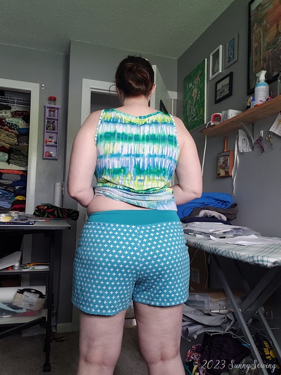Bottoms: Made for Mermaids – Mila shorts, made from scraps, Sewn June 2022. love this pattern