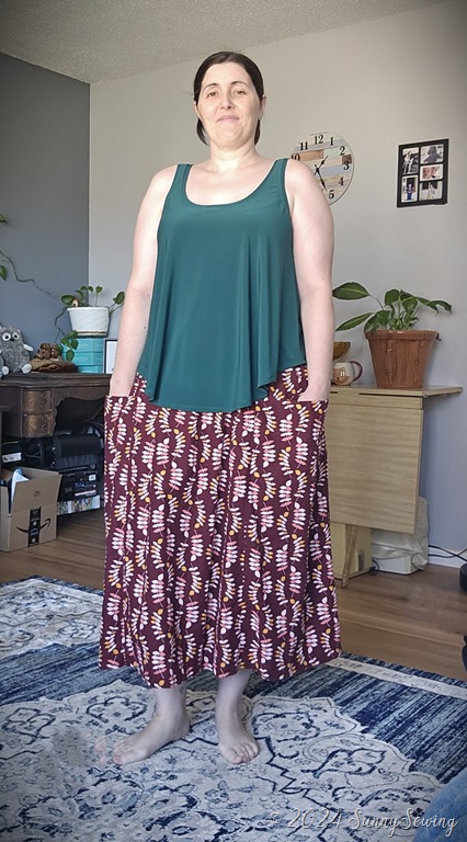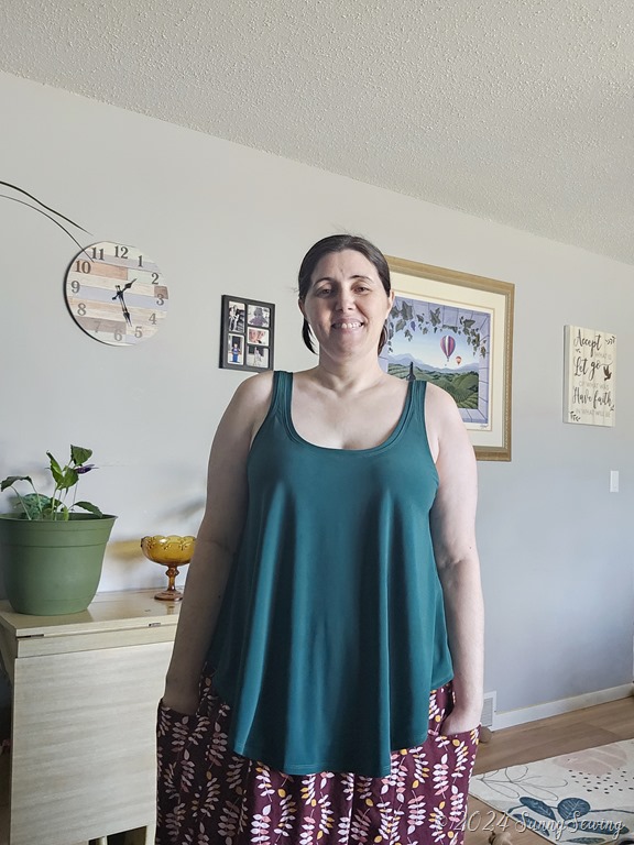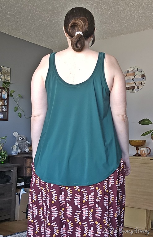 Overall fit and issues: I like the length of the top. I haven’t had a chance to make the dress yet, but I plan too. I like how it looks and fits with my stomach/hip area – I love a swing tank.