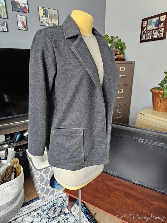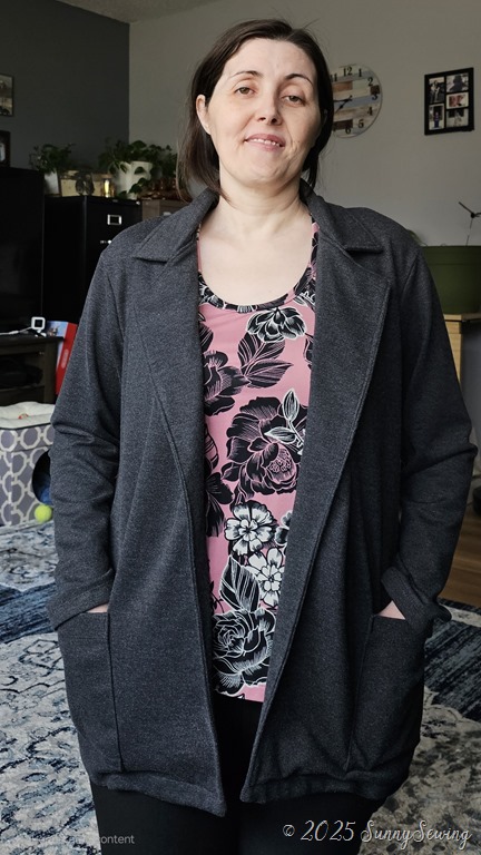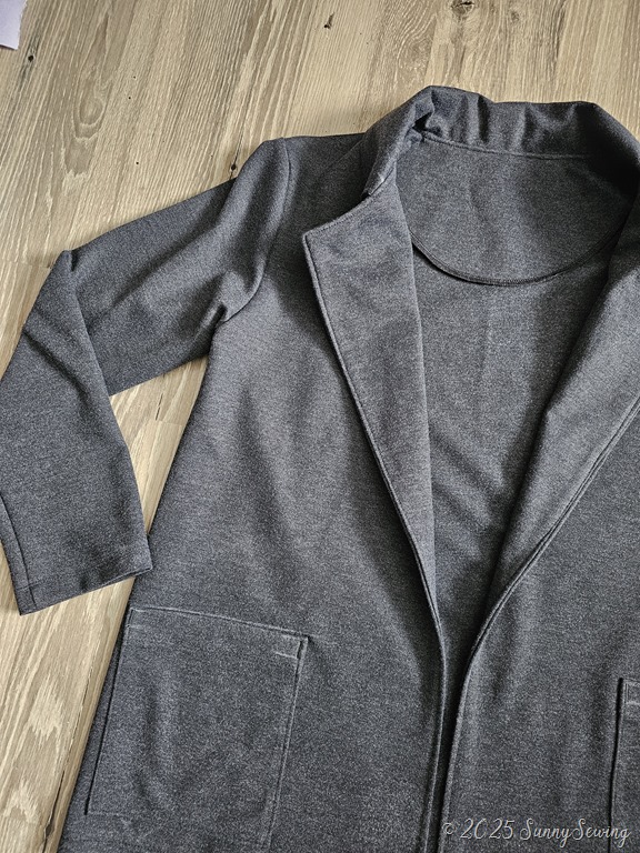 Even though this type of “dressed up” cardigan is not my usual casual at home style, I will definitely wear it. It looks so sharp and I think it is a great layering piece. I saw that someone made it in sweater knit and now I want one in a cozy sweater knit too!