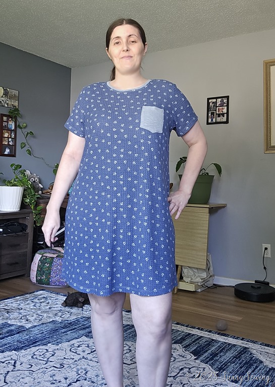 Thoughts: The t-shirt was wrong size, wrong fabric. It didn’t turn out well. But I’m not here to show you only the good, so I wanted to include the unfortunate T-shirt, lol. The dress was the right fabric and right size and turned out awesome. I love the dress/nightgown.
